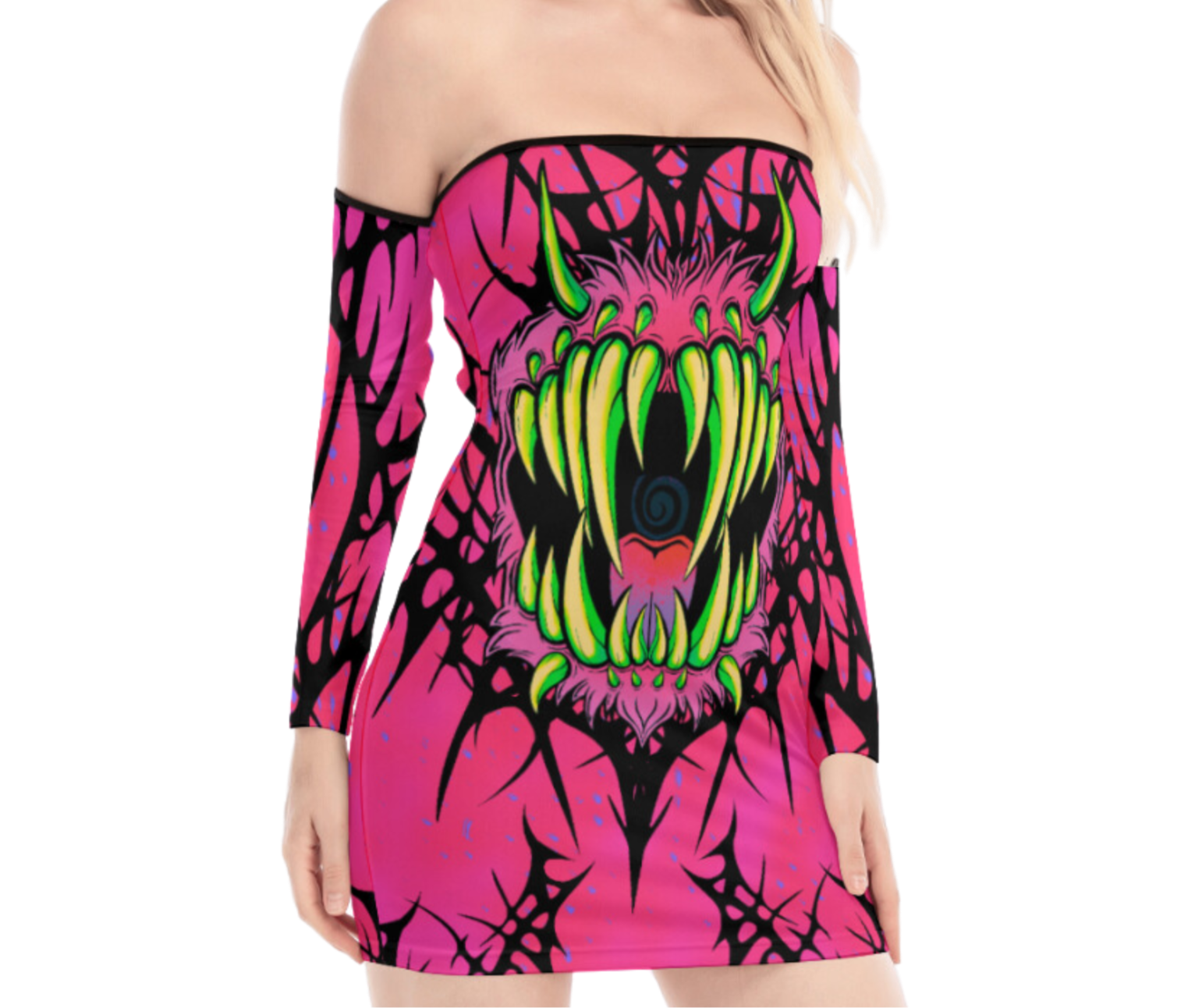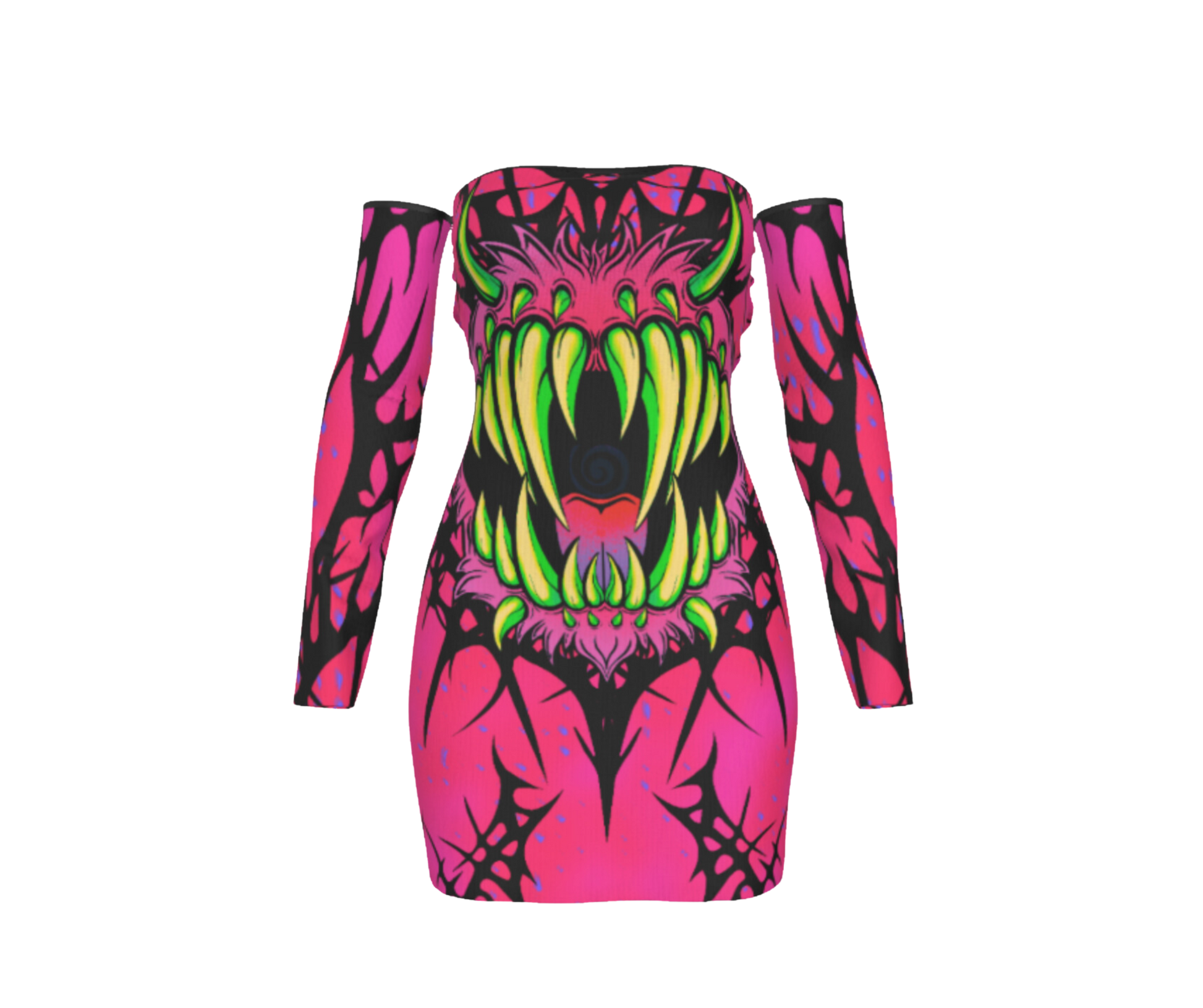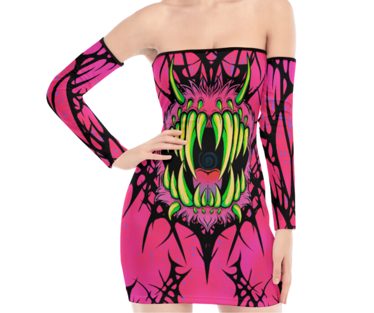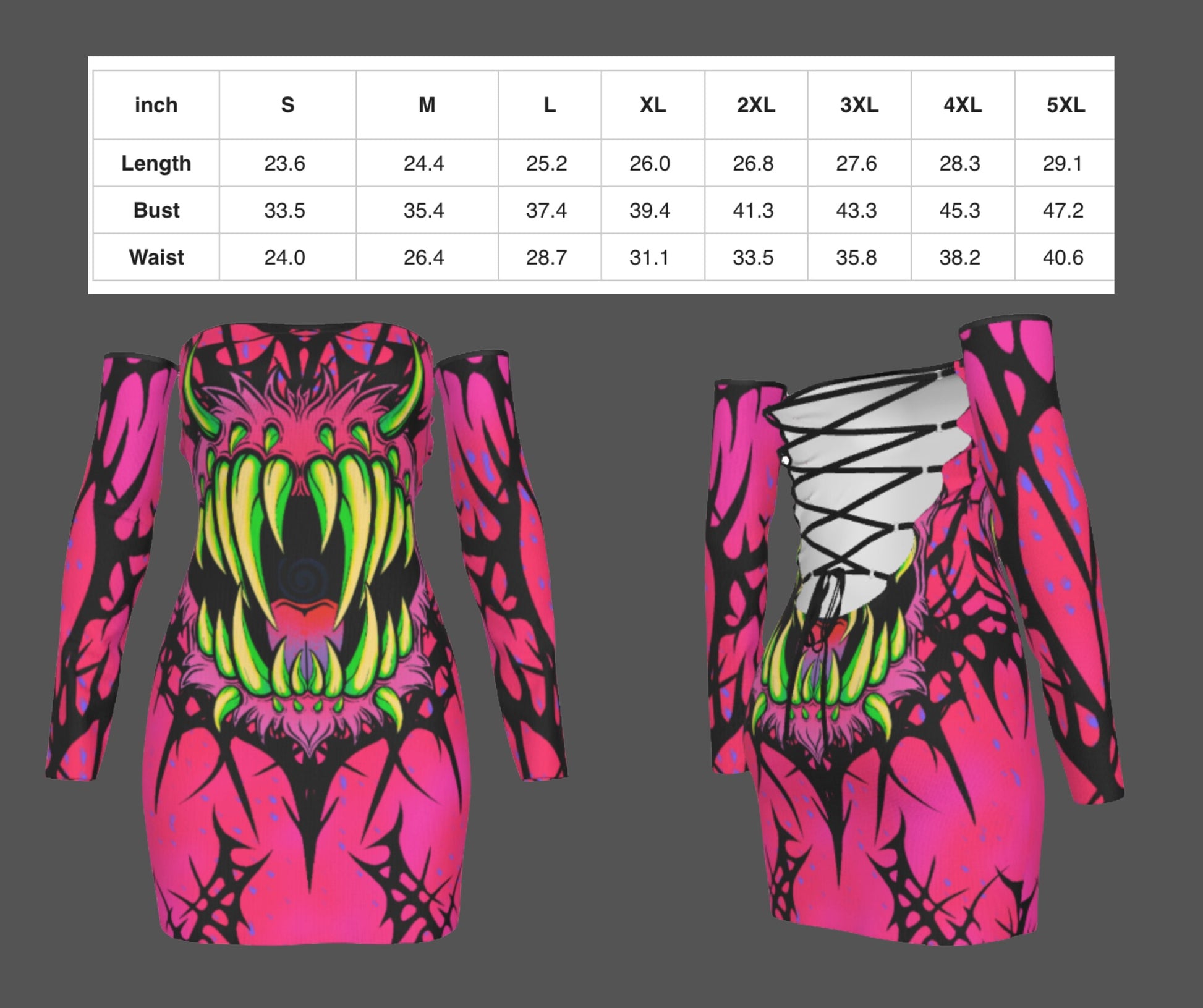 This form-fitting Monster Babe Dress is made of a slightly stretchy fabric that is lightweight and close-fitting! Featuring artwork by Haley Lane of HaleyLaneArt of giant monster teeth!